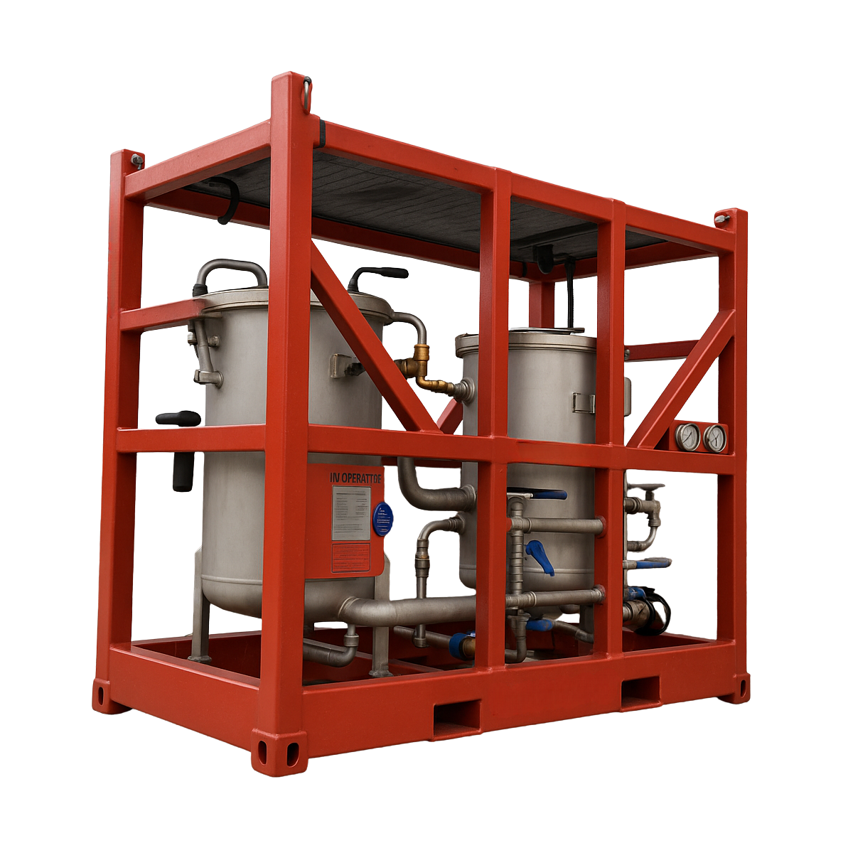 El diseño modular permite al operador ajustar la configuración según las necesidades del proceso, ya sea para prefiltración, filtración fina o separación de fases líquido–líquido.